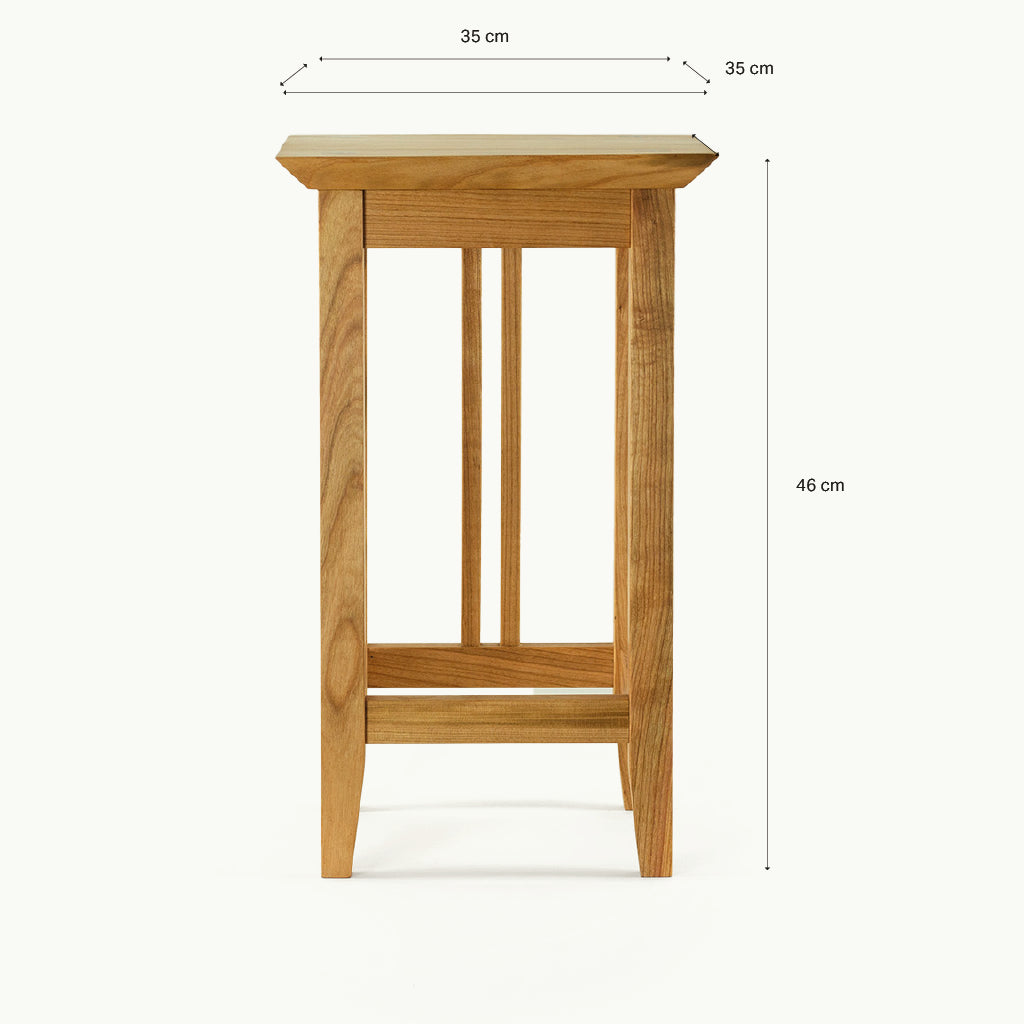 Dieser Hocker ist die Weiterentwicklung eines Entwurfes, der sich sehr in den Sitzproben bewährt hat. Die massiv gefertigten Hocker bestechen durch Geradlinigkeit und klare Form. durch die Seitenstreben in der Zarge, wird dieses filigran anmutende Werkstück formstabil und unverwüstlich. Die durchgestemmten Zapfen in der Sitzfläche sind ein besonderer Hingucker und auch konstruktiv so stabil, dass sie nur aufgekeilt und ncht verleimt werden müssen. Die Sitzflächen sind ganz besondere Stücke aus unserer Sammlung an einheimischen Hölzern.