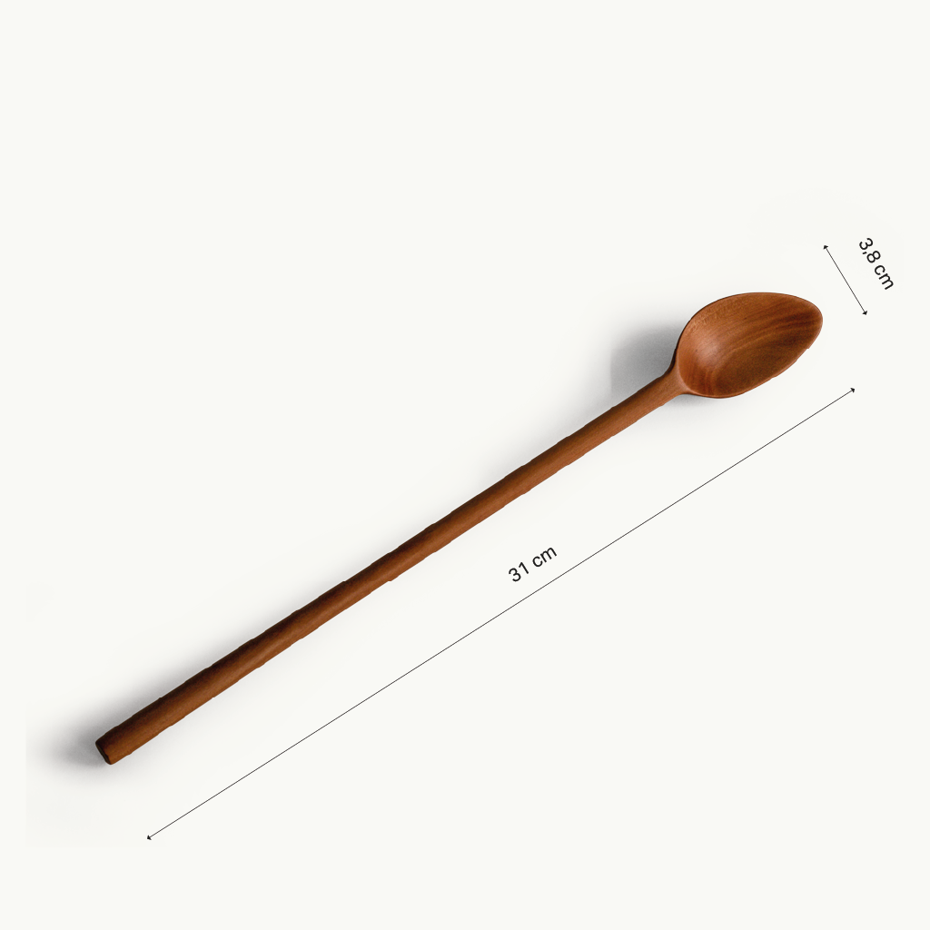 Dieser Kochlöffel aus Elsbeere folgt der Hand, nicht umgekehrt: Die längliche, asymmetrische Laffe ist gespiegelt ausgeführt – einmal für Rechtshänder, einmal für Linkshänder. So erreicht sie Topfrand und -ecken mühelos und führt Flüssigkeiten kontrolliert zurück in den Topf. Der lange, schlanke Stiel gibt Reichweite, das feinporige Elsbeerenholz liegt warm in der Hand. Aus einem Stück gearbeitet, sorgfältig geschliffen und mit natürlichem Leinöl-Finish veredelt, entsteht ein Holzlöffel, der leise rührt, Töpfe schont und tägliche Küchenbewegungen spürbar ruhiger macht.